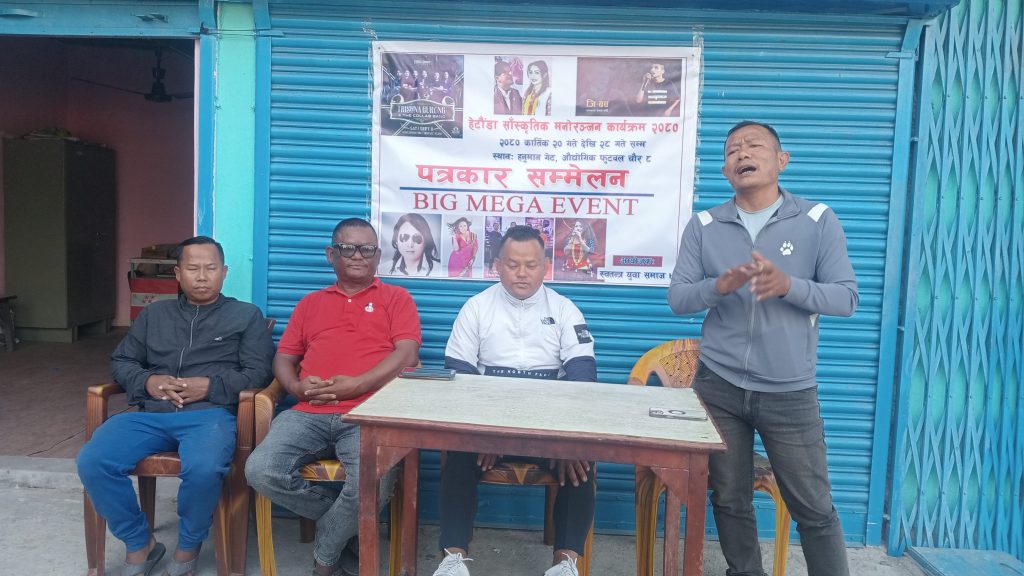 विहीबार पत्रकार सम्मेलन गर्दै हेटौंडा-९ स्थित औद्योगिक खेल मैदानमा आउदो कार्तिक २० गते देखी २८ गते सम्मका लागी कार्यक्रम गरिन लागेको संयोजक किरण लामाले बताएका छन् ।