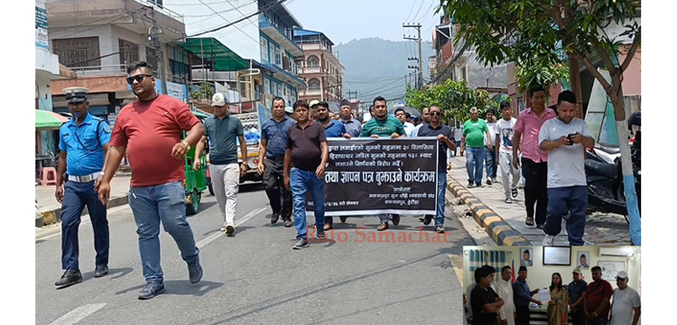 संघका अध्यक्ष सहित टोलीनै प्रमुख जिल्ला अधिारी स्किम श्रेष्ठ समक्ष ध्यानाकर्षण पत्र पेश गरेका हुन् ।