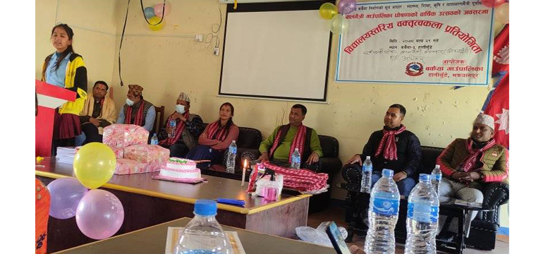 शनिबार सामग्री वितरण गर्दै वक्तृत्वकला प्रतियोगिताको आयोजना गर्दै बालअधिकार संरक्षणमा क्रियाशील व्यक्तित्वलाई सम्मान समेत गरेको ।