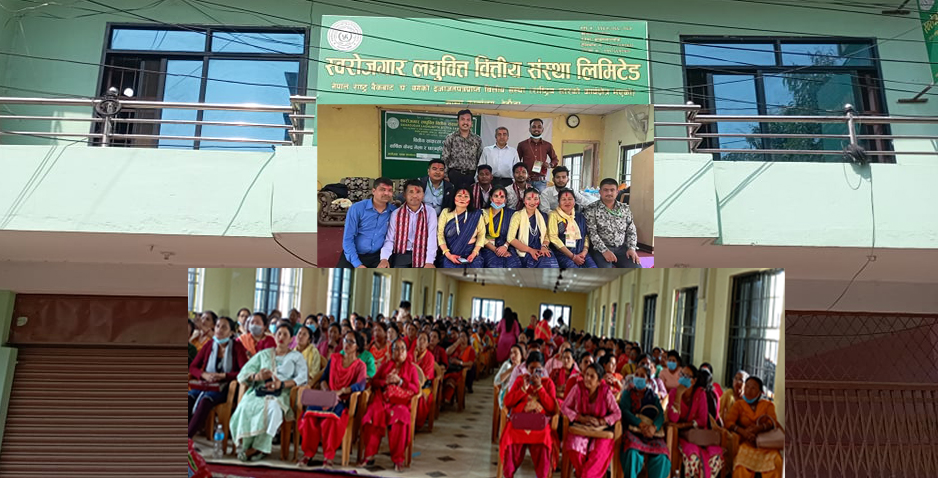बिमला वाइवाको सभापतित्व अध्यक्ष ज्ञानेन्द्र राज पाण्डेको प्रमुख आतिथ्यतामा सम्पन्न कार्यक्रममा कार्यक्रम दिदिबहिनिहरुलाई स्वरोजगार र उद्यदमी बनाउन ऋण लगानी गएिको गरेको अध्यक्ष ज्ञानेन्द्र राज पाण्डेले बताए ।