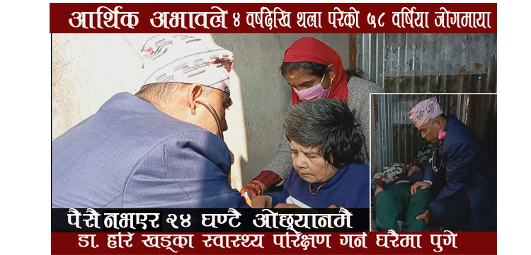 थलापरेकी५८वर्षिया जोगमायाको स्वास्थ्य परिक्षणमा डा. खडका उनकै स्थानमा