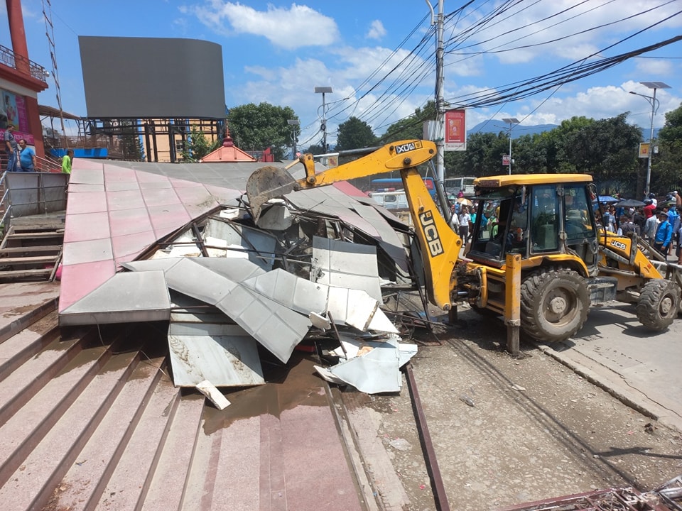 सम्बन्धित घरधनीले नै सफा गर्नुपर्ने काठमाण्डौ महानगरले भत्काएको संरचना